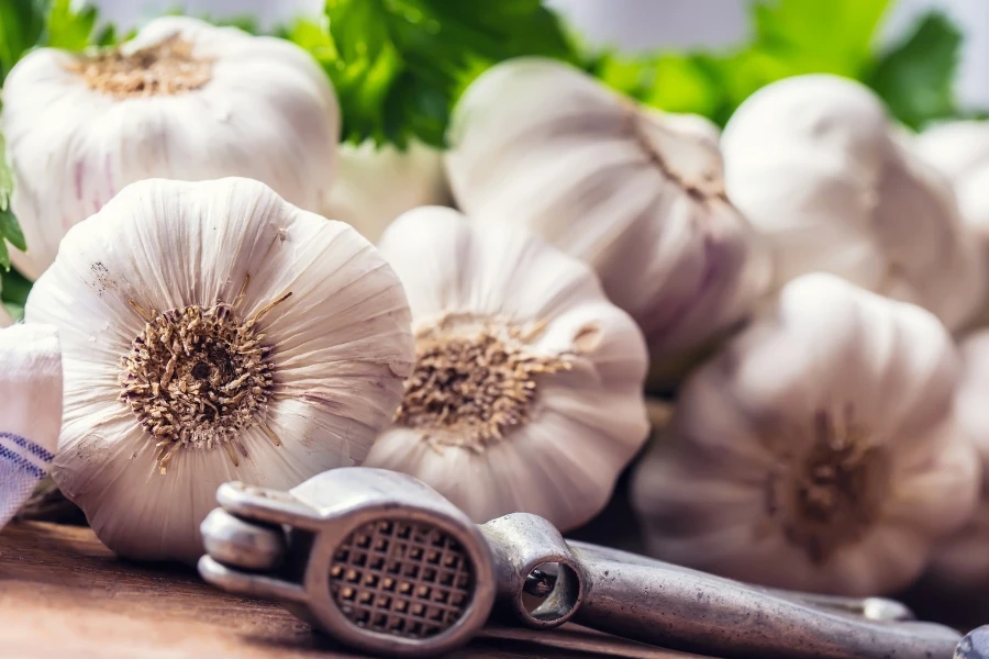 กระเทียมมีกลิ่นฉุนแรง เชื่อว่าทำลาย “ธาตุไฟ” ทำให้ใจร้อนมีกำมะถันสูง กระตุ้นระบบประสาทและความดันโลหิต